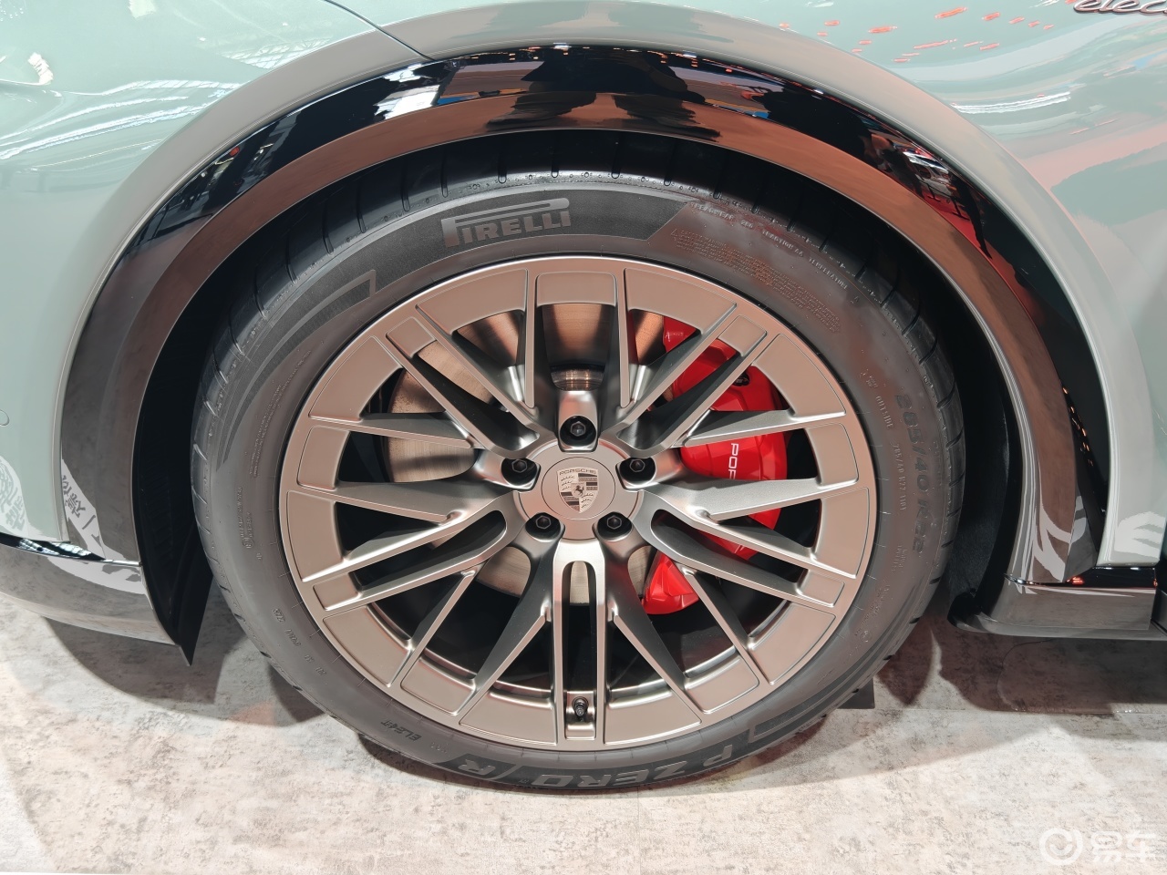 要知道,这可是Turbo,系统功率850kW,最大扭矩1500Nm,百公里加速2.5秒,整体数据非常夸张。中国版还标配了Porsche Active Ride 底盘系统、后桥转向系统、22英寸轮毂,这些都是硬核配置,不过展车的PAR似乎有点问题,车辆歪了。
