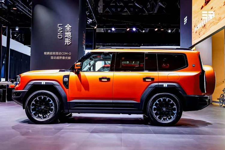 方程豹豹8则走的是略带未来感的硬派设计路线,前脸半封闭格栅融合立体底唇,呈现出金属切削般的质感。两侧大灯与中央黑色格栅相融合,粗壮的前包围采用了锁扣式的设计,相比纵横G700的粗犷造型更为精致。车身侧面采用了分段式的车窗结构,带有起伏型面和棱线结构的车身拥有了较强的力量感。车尾部同样采用了外挂式备胎设计,底部上扬的金属护板也让离去角较为可观。