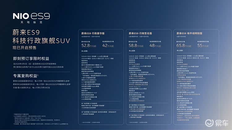 蔚来发布全尺寸SUV ES9,租电版预售42万起2026/04/12 · 买卖车讯