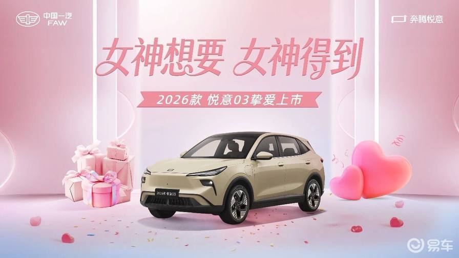 2026款悦意03带来全新晨晖金车色、晨曦白内饰色等20余项升级,现在购车还可享7年0息贷款、无门槛整车及三电终身质保等权益。