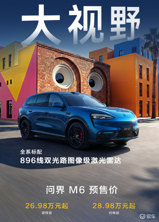此外,SUV方面,问界M6也正式开启预售。增程版车型预售价格为26.98万元起;纯电版车型预售价格为28.98万元起。