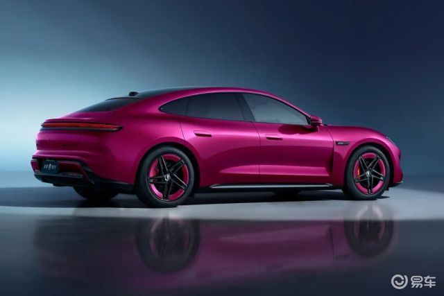 车身侧面动感流畅,车门为半隐藏式门把手。新车尺寸为4960*1985*1736mm,轴距为2950mm。轮毂有多种样式选择,内部还配有红色卡钳罩,进一步强化运动气息。车身提供活力橙、流光青、昼夜紫、钛空银、脉冲蓝、暖云白、曜石黑七种车身配色可选。
