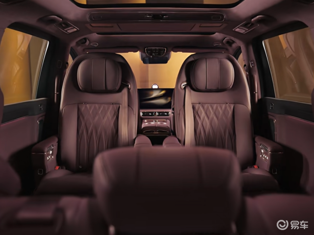 内饰方面,智界V9搭载鸿蒙智能座舱,采用贯穿式三联屏设计,全液晶仪表、中控多媒体大屏、副驾娱乐屏无缝衔接。车内采用大量软包,并辅以实木饰板、水晶旋钮等来提升整体车厢质感。车内冰箱彩电大沙发齐全。