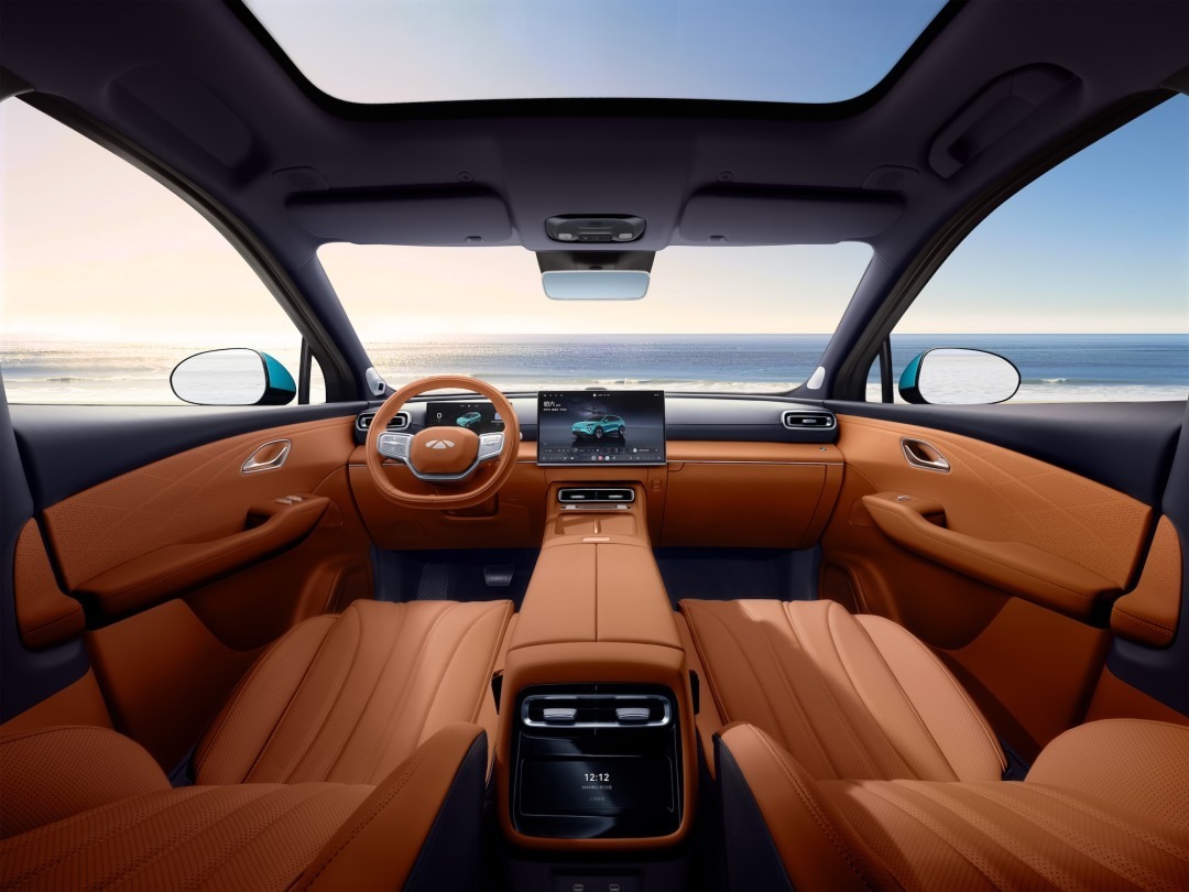 设计层面,新车融合东方美学与现代工业设计,以“东方书韵”为原创设计语言,点墨大灯、水墨长虹尾灯等细节尽显中式韵味;6款专属车色萃取自中国山河盛景,搭配高端车漆工艺,实现长久质感保持。内饰以“文房雅居”为理念,环抱式座舱搭配256色氛围灯,营造出兼具质感与温度的驾乘空间。