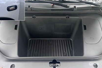 在同级甚至更高级别车型前备厢均采用封闭设计时,全新QQ3提供70L容积的前备厢空间,并且同样采用更科技的电动开启方式,除车外语音、实体车钥匙、车内机械解锁、车内语音、手机APP、中控屏开关以及3D车模外,左前翼子板处的装饰件还设计有相当实用的物理实体按键,仅需长按即可开启电动前备厢,当然关闭也是如此。