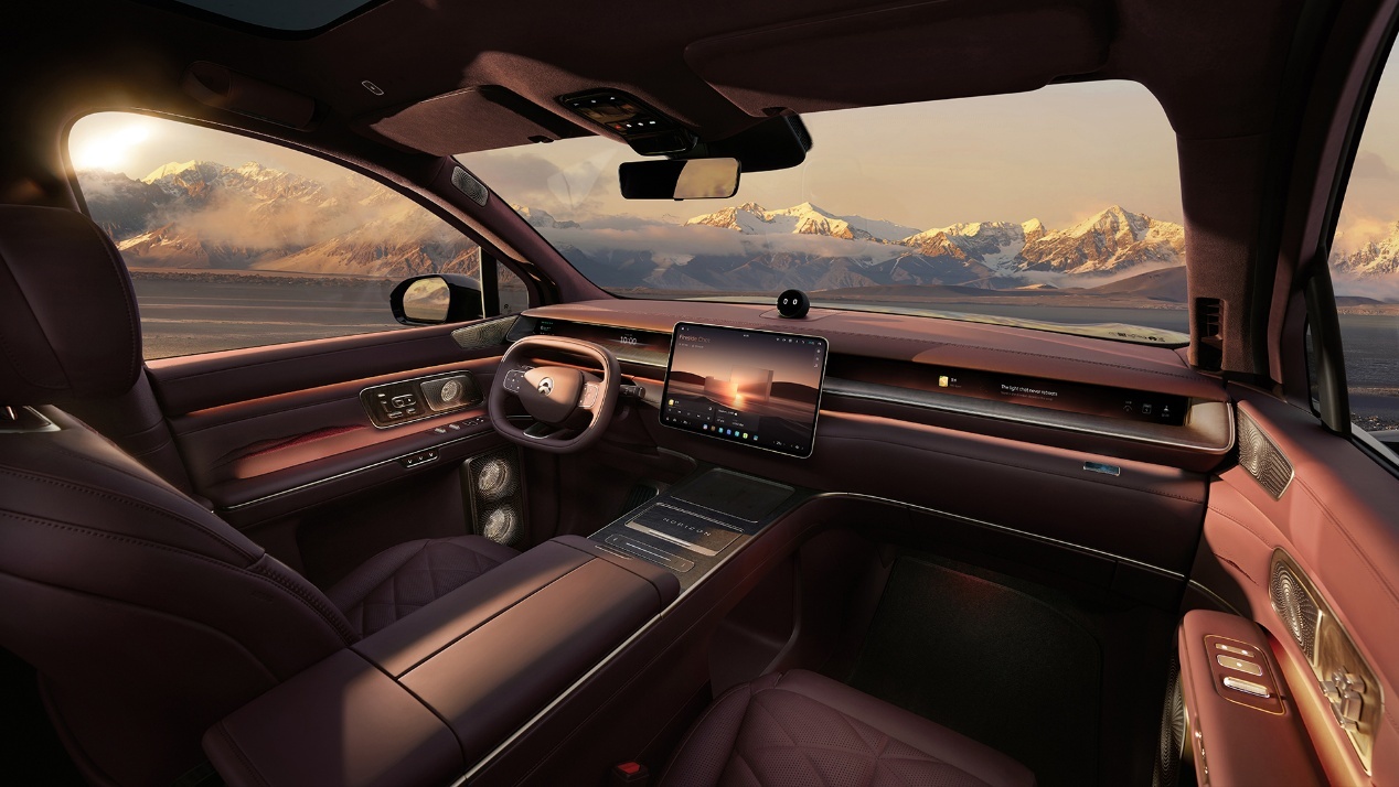 车内提供云贝米、玳瑁棕、苏木红三款单色主题,以及可可棕与潜沙白双搭配色,还配备左右双片式天幕、五区独立空调、47扬声器9.2.4.8沉浸声系统。ES9地平线特别版还在座椅靠背、车门饰板等处加入了山水刺绣元素。前备箱容积达216L,支持按压、叩击、车外语言、手势与脚踢感应等11种开启方式。后备箱内部高度1220mm、最大进深606mm,常规容积600L,包含123L下沉储物空间。