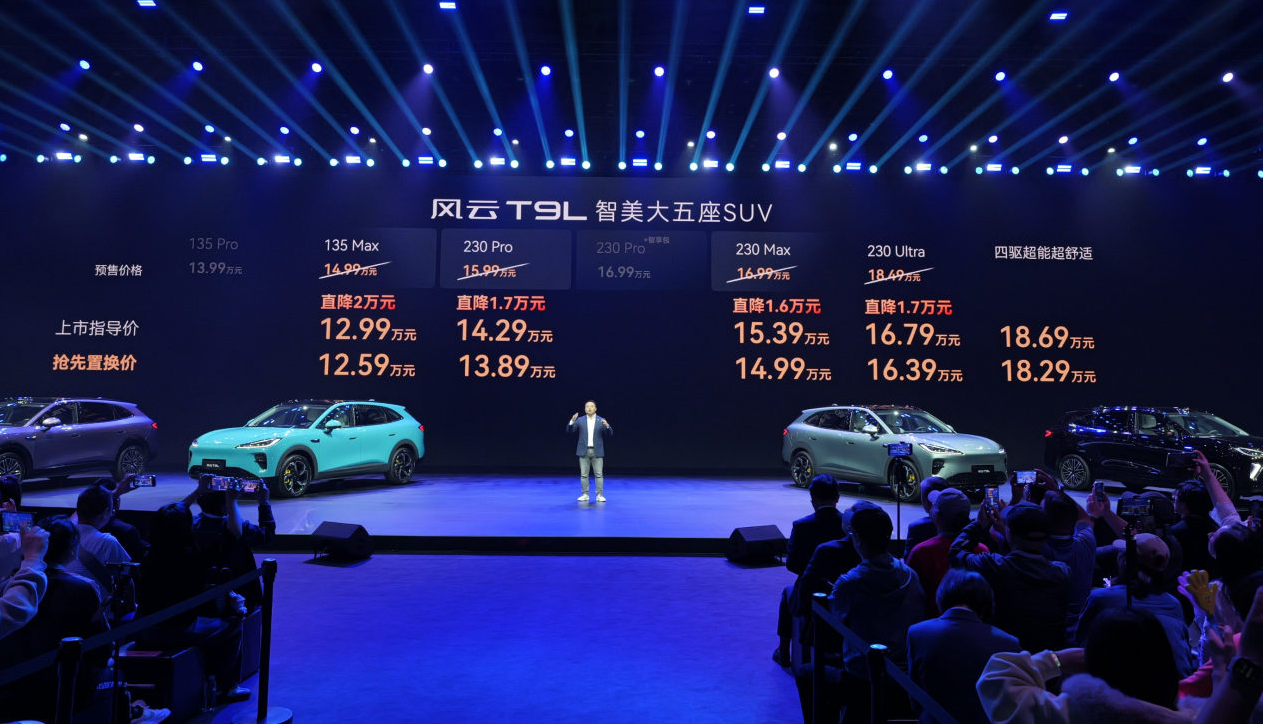 4月13日,家用智能大五座SUV风云T9L正式上市,官方指导价12.99~18.69万元。