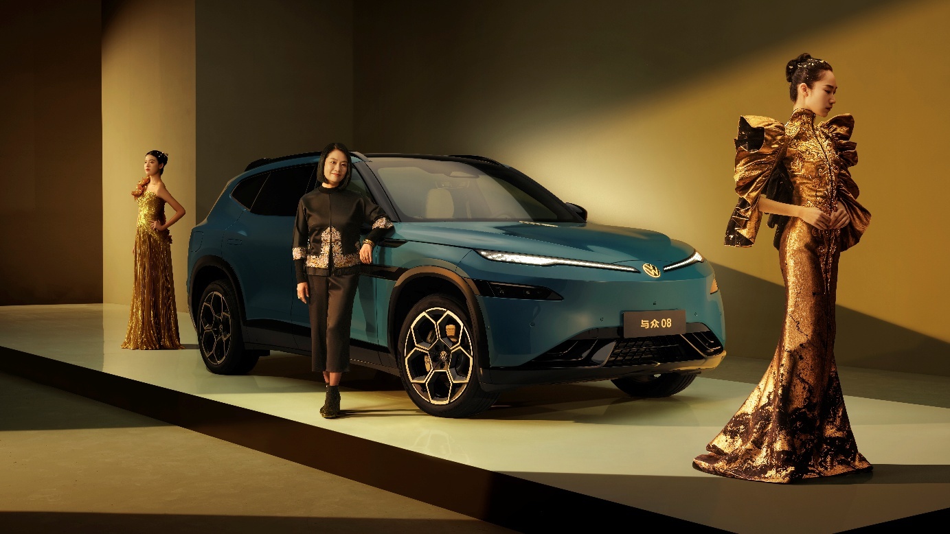 将全球审美与东方美学有机融合,是与众08的设计巧思,这也与著名高定艺术家郭培的设计理念不谋而合。发布会现场,金标大众邀请郭培跨界合作带来了一场视觉时装大秀,她以“中轴对称”构建出华服的恢弘气场并赋予织物流动的生命力,同时用顶级的刺绣工艺与前卫的廓型设计,将中国传统文化与现代高级时装融为一体。模特们身着以“东方对称美学”为灵感的高定系列,在极具张力的金色光影中穿行,衣袂流转间展现着当代东方的奢雅格调。