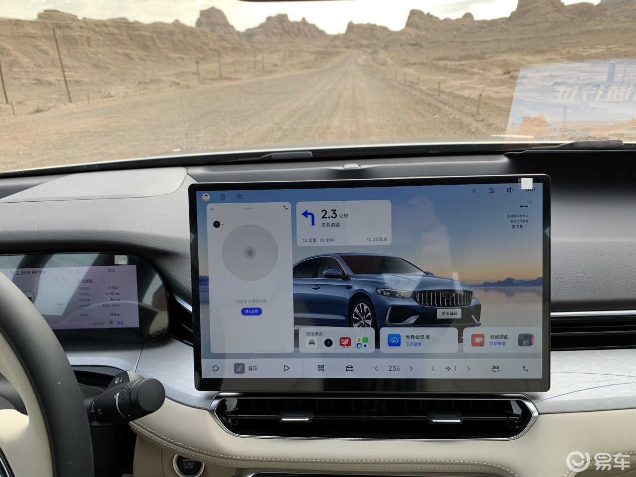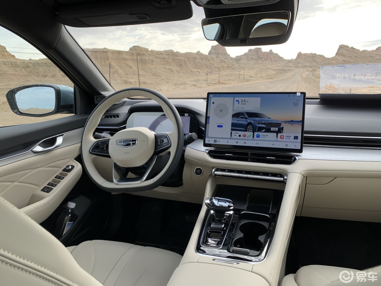 试驾吉利星瑞i-HEV智擎混动时,车上4人,编队行驶经过几公里国道后,就进入了魔鬼城景区的非铺装路面,其中大部分还是搓板路,景区内还能看到达喀尔比赛的指示牌,相当的酸爽。