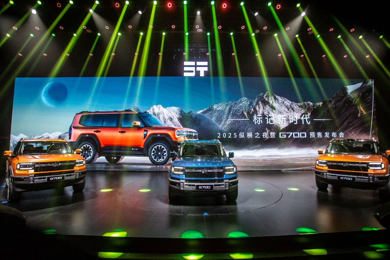 G700的外观设计遵循硬派越野的设计风格,整个车身看上去非常的硬朗,方正的车头加上横向贯穿的设计,营造出了更为宽大的视觉效果,方正的LED大灯让前脸更为硬朗,下方的保险杠则是延续了大多数越野车的设计,也更方便后续改装竞技保险杠或者绞盘。