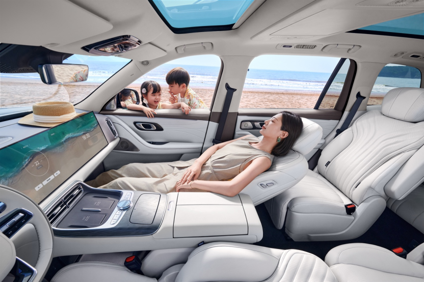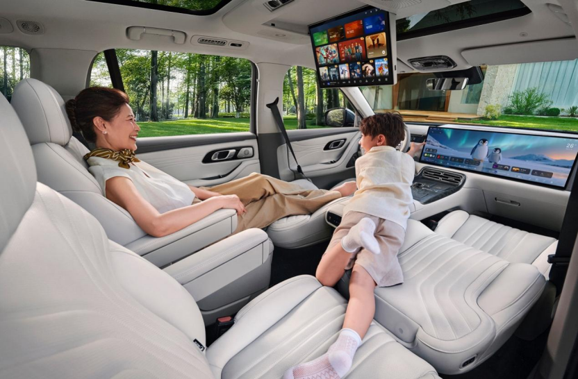 实际乘坐空间上,吉利银河M9第二排也会更加宽敞,但重点却是在第三排,第三排座椅电动调节最大支持150度,这样设计的好处就是可以让第三排乘客也能“躺平”,另外,340mm座椅高度和前两排是一样的,从此告别“三排小板凳”,这点必须要夸一下。反观理想L9,局促的腿部空间让第三排坐起来像小板凳,长途满载情况下第三排乘客很容易疲劳。所以在照顾第三排乘客舒适性这个问题上,吉利银河M9真正做到了三排平权。