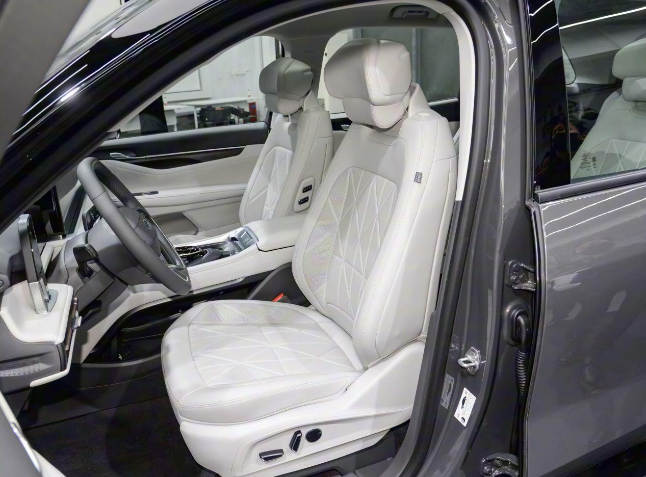26款锐界L的顶配车型升级点也很给力,直接换上了半苯胺全粒面豪华真皮座椅,很多小伙伴可能只听说过Nappa真皮座椅,没听说过半苯胺。这里给大家科普一下,半苯胺材质的档次感是超过Nappa真皮的,因为半苯胺真皮需要无疤痕或细微自然印痕的优质全粒面头层牛皮打造,不仅涂层更轻薄,触感更舒适,还具有良好的抗污性和透气性,一般只用在路虎揽胜、库里南这种豪车身上,现在新款福特锐界L竟然也用上了半苯胺材质,只能说“旧时王谢堂前燕,飞入寻常百姓家”。