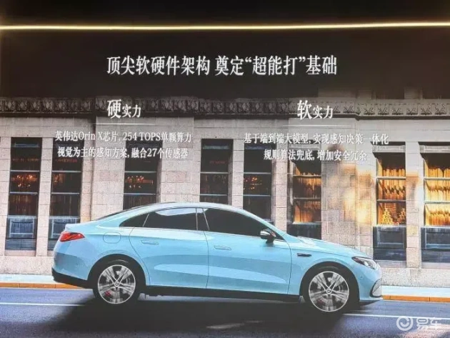 智能辅助驾驶系统由奔驰与Momenta联合开发,以“人机共驾”为核心理念,兼顾效率与文明。硬件上搭载英伟达Orin X芯片,算力达254 TOPS,配合27个传感器,不依赖高精地图,实现从车位到车位的全场景辅助驾驶。在高速场景中,系统可识别180米外目标,自动变道成功率超99%,并能智能远离大车、精准驶入驶离匝道。在城区,它从容应对无保护左转、环岛、施工区等高难度路况,红绿灯识别仅需100毫秒,起步平稳如“老司机”。