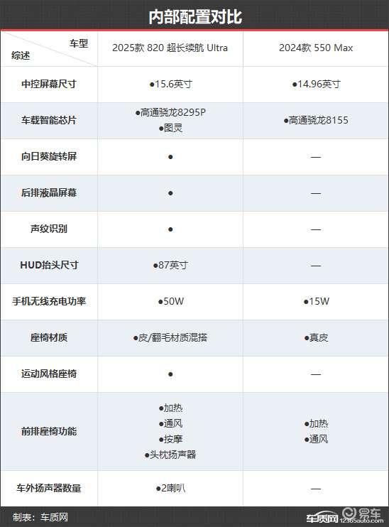 内部配置方面,中控屏是新款车型的一大亮点,不仅尺寸提升至15.6英寸,而且中控屏“会说话会点头”,拥有25°上下以及左右摆动幅度,如真人般主动响应,颇具可玩性。同时,车机还内置了高通骁龙8295P和图灵车载智能芯片,响应速度得到大幅提升。此外,新款车型还增加了前排座椅按摩、头枕扬声器、2个车外扬声器等,进一步提升了用车体验。