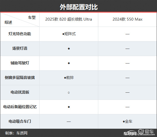 除了外观设计有较大的变化,新款车型的外部配置也有着不小的升级,增加了矩阵式灯光特色功能和场景灯语,点亮后极具科技感,当下流行的辅助驾驶灯也没有缺席。此外,新款车型还增加了前排侧窗多层隔音玻璃以及电动后备厢位置记忆,进一步提升静谧性和用车便利性。不过,新款车型取消了全车电动吸合车门,略有遗憾。