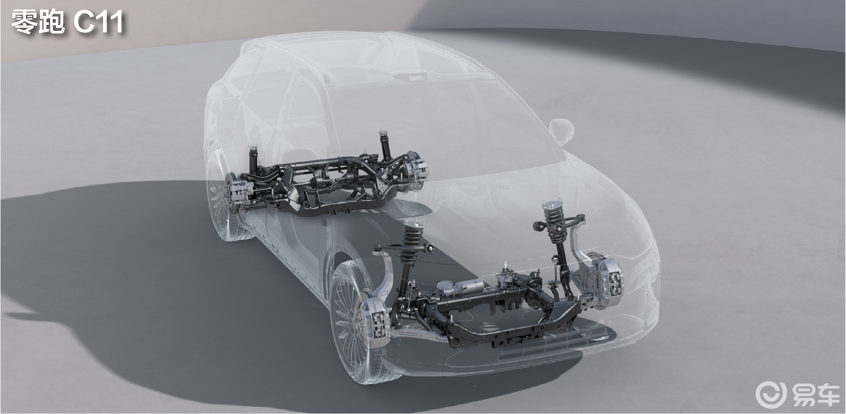 零跑C11同样采用单电机后置后驱,最大功率220kW、峰值扭矩360N·m,百公里加速6.1s。其牺牲前备厢(深蓝S07有)换来的双叉臂前悬架对于提升操控极限以及降低侧倾有一定帮助,CTC 2.0 Plus电池底盘一体化技术也有助于提高整车刚性。