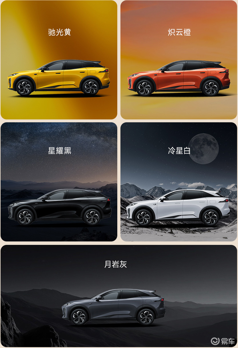 深蓝S07外观相对来说偏运动一些,纯色的星耀黑、冷星白、月岩灰色车漆可以免费选装,想要炽云橙+黑、驰光黄+黑这种更个性、运动、年轻的车身颜色则需要单独花费1999元选装。内饰共有热浪橙、月雾灰、暮烟紫(新增)三种颜色可选且都不用单独付费,整体豪华游艇式的环抱设计+超纤绒感麂皮包覆,让内饰的手感更好,据悉其全车软包面积有10.7㎡。