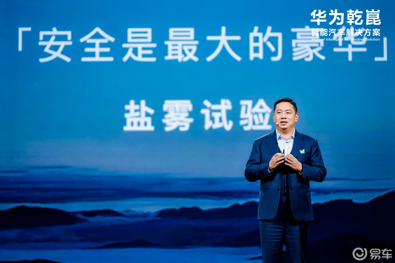 在车辆性能配置上,首款车型采用双电机四驱布局,最大功率达 470kW,零百加速仅需 3.8 秒,同时配备 110kWh 大容量电池,CLTC 工况续航里程突破 700 公里;安全配置方面,车身采用高强度钢占比达 85% 的笼式车身结构,搭载 8 个安全气囊,配合华为智能安全预警系统,全方位保障驾乘安全。